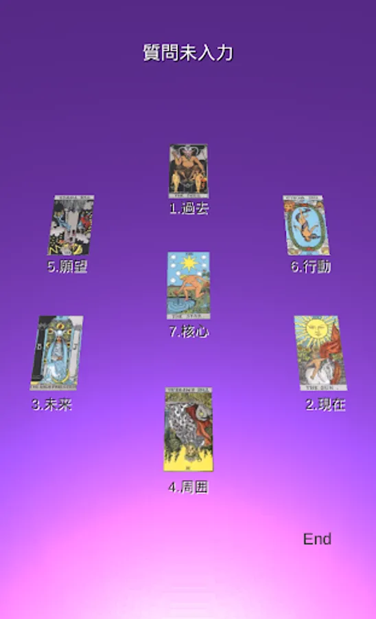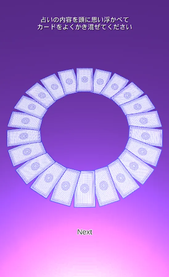 In this application, you can enjoy full-scale tarot fortune-telling using real cards by simulating the movement of tarot cards using UNITY.