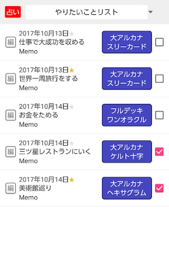 You can see the results of past tarot fortune-telling. You can also record and save details with notes.