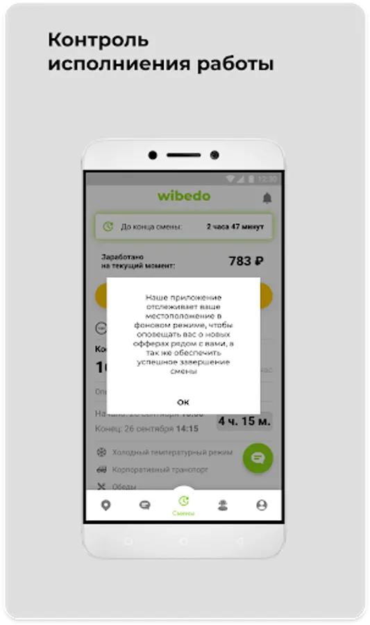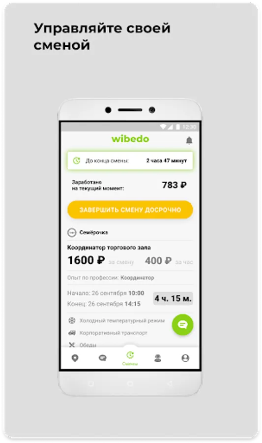 With our application, you are the owner of your time, you decided to work - go to the application and choose a suitable part-time job, if you want to relax - just do not respond. It's cool to manage your time when there is Wibedo😉.