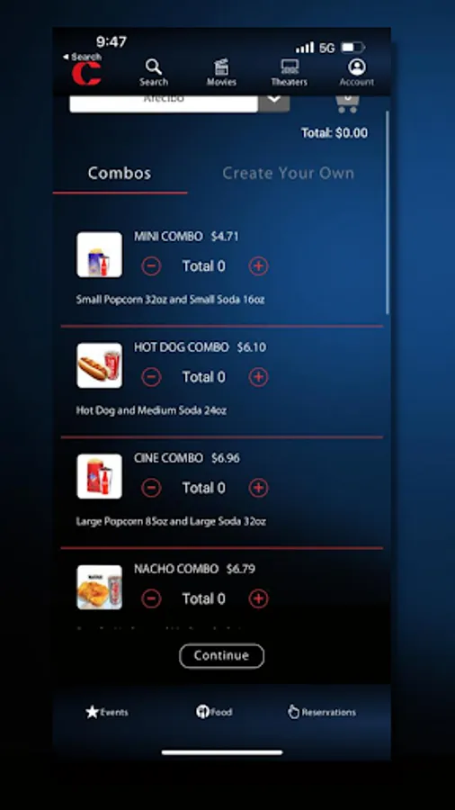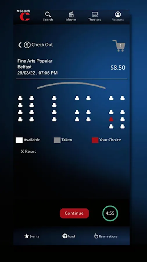 Food & Concessions: Include your concessions in advance, and save time at the theater! Note: all items available ‘in store’ are not yet available ‘in app’