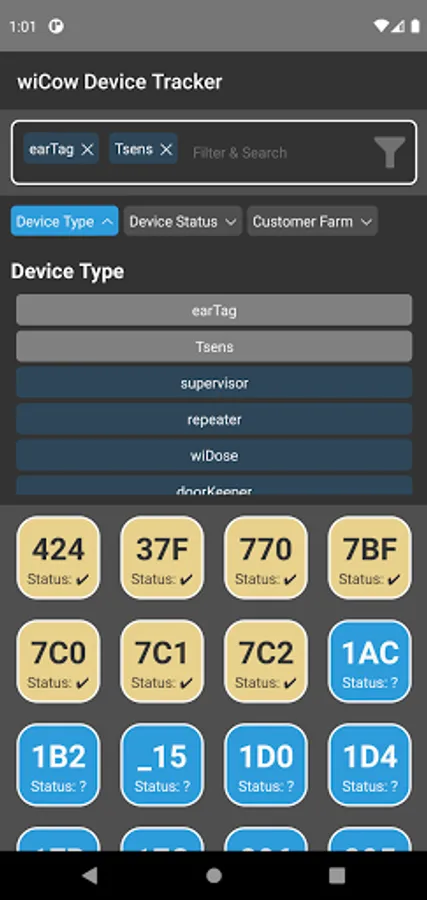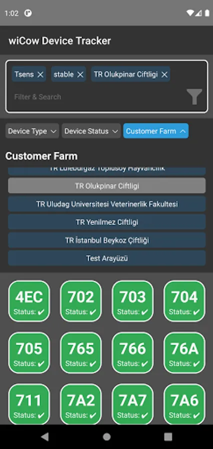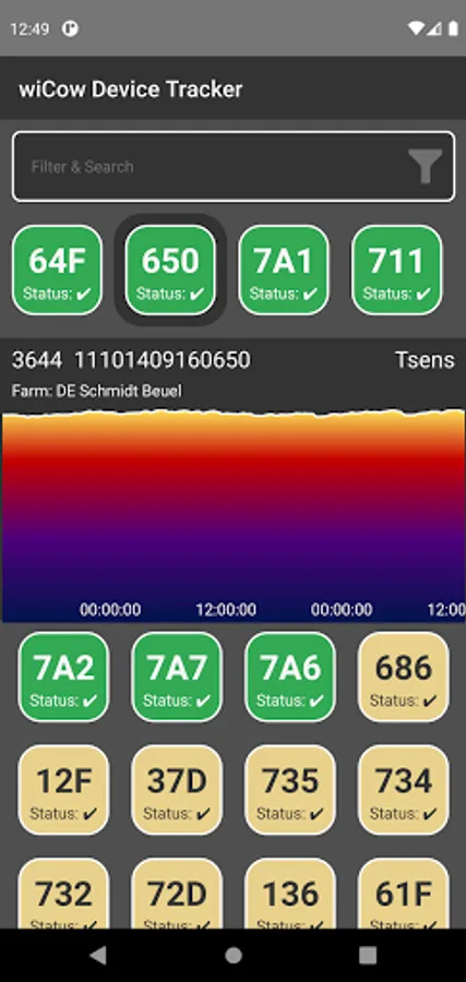 With this app, you can monitor devices' status and temperature graph. Also you can filter devices by their type, status and farm.