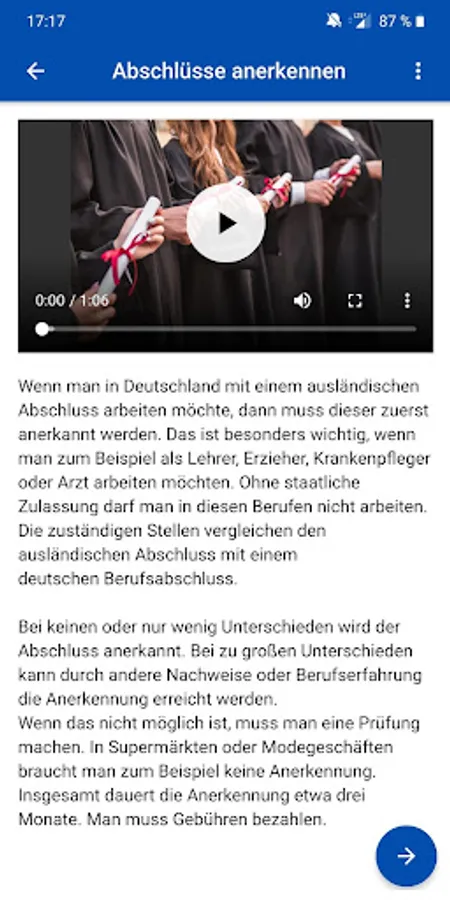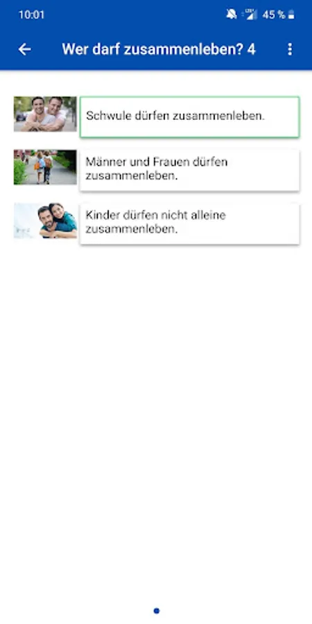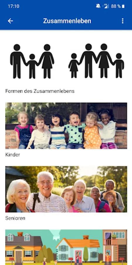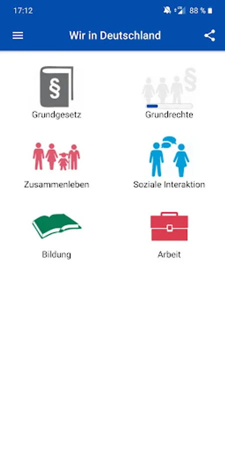 The app teaches the basic principles of the German civil society order on a simple language level and sustainably supports the integration by providing targeted information, enlightening, providing concrete communication support and ensuring a true understanding of the learning content through numerous motivating and interactive exercises.