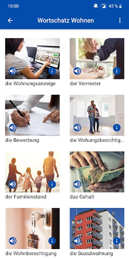 - thematically structured vocabulary overviews with audio recordings and explanatory glossary