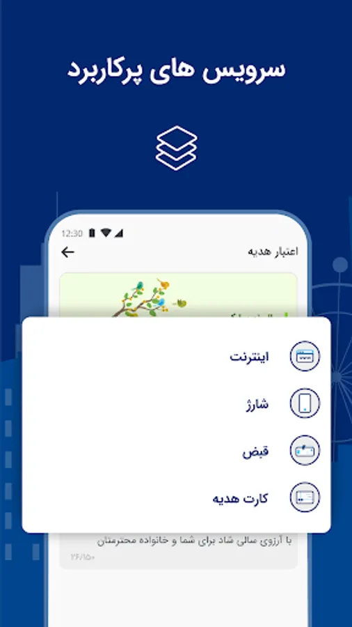 ● The possibility of charging mobile accounts (Hamrah e aval, Irancell, Rightel)