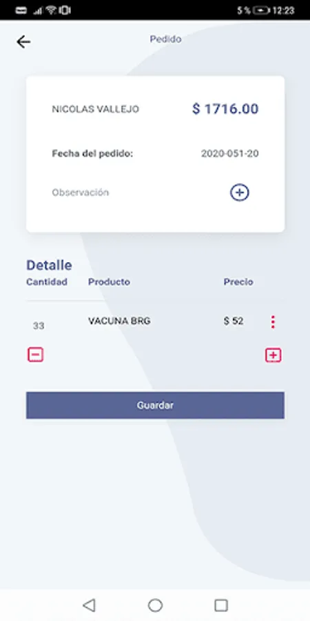 Application for Taking Direct Orders to Vacunamed and Management of the same