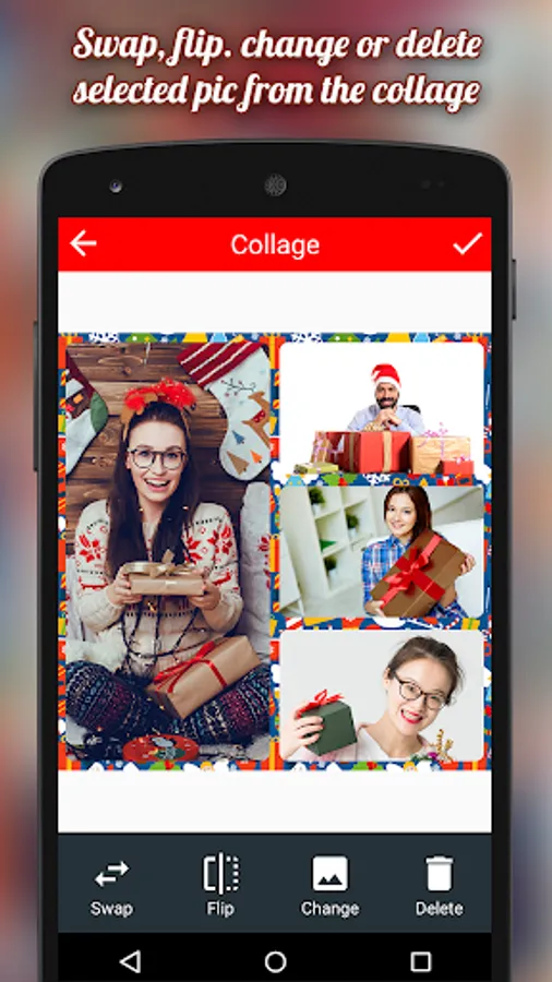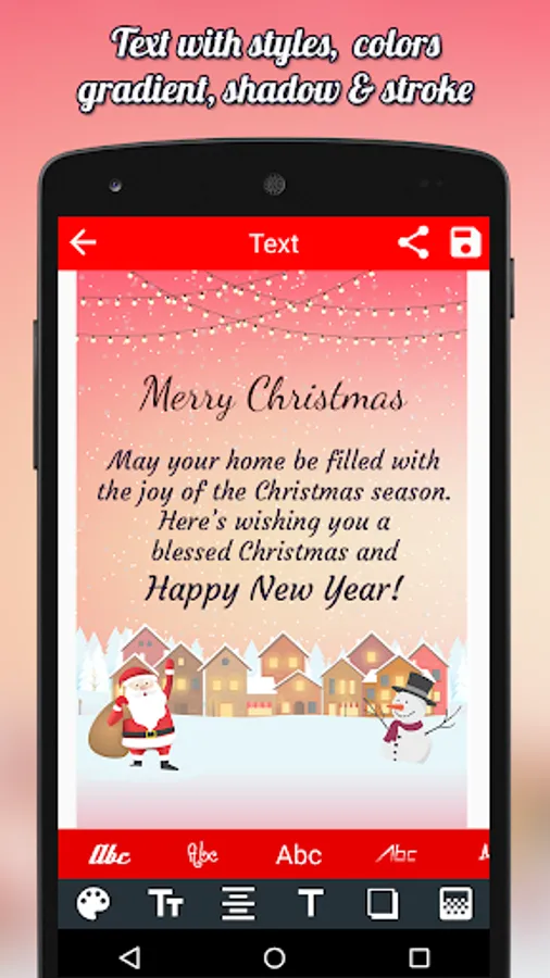 1. Select a “Christmas Card“ from bunch or Pick image from gallery or capture image from camera or select color from color picker.