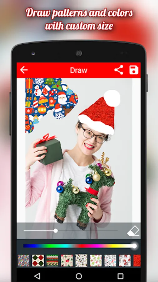 5. Draw Christmas patterns and colors with custom size to make picture more attractive.