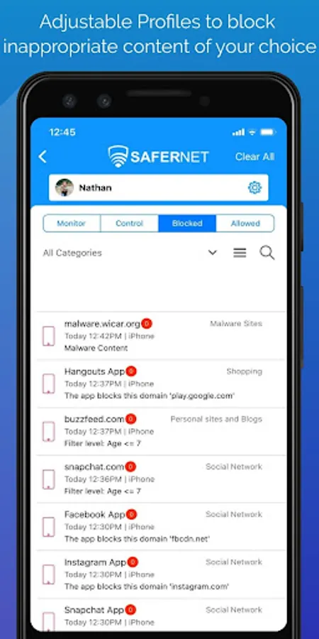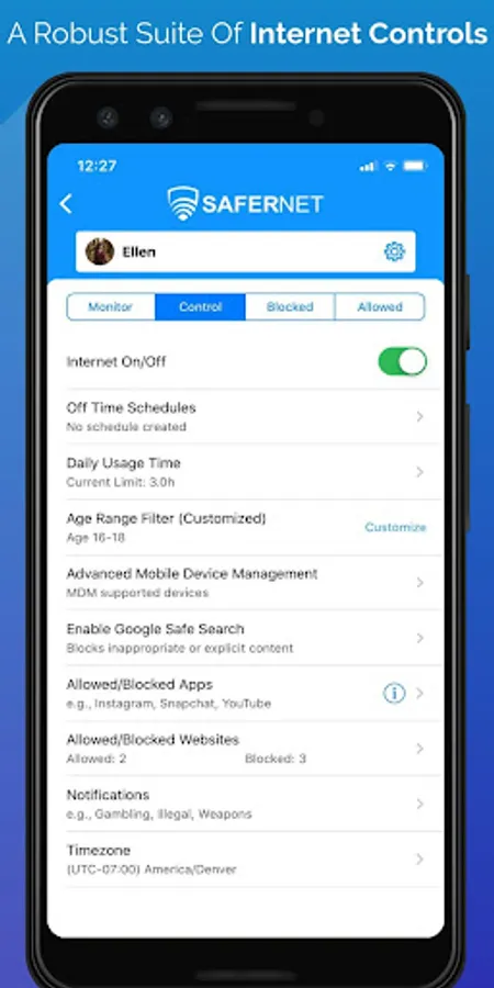 SaferNet is designed to protect small businesses, families, and individuals against cybercriminals, data harvesters, trackers, and other online threats that can leave you vulnerable. Our app lets you monitor, control, and protect your devices with ease, offering a whole toolkit of internet controls that includes website and app blocking, adjustable profiles to block content, internet off-time schedules, and more.