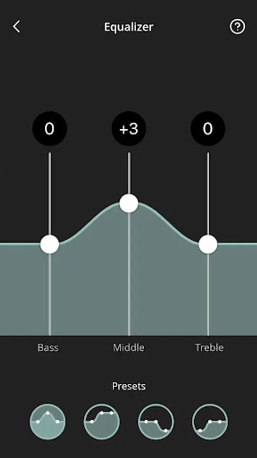 - Adjust the pitch of the sound (bass, middle and treble) using the equalizer