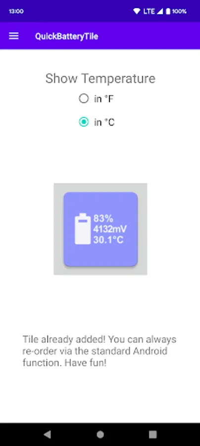 Quick Battery Tile Screenshots