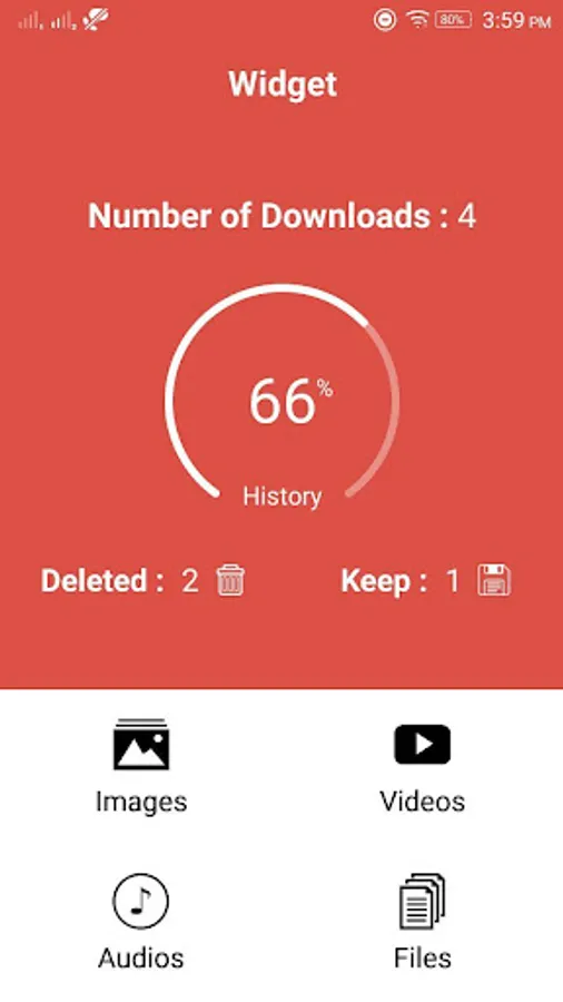 Get a detailed statistics of your data and delete files with ease.Proper segregation of audio and video files.