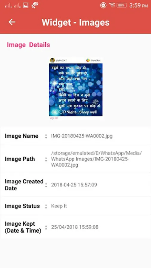 This application is to help reduce extra unwanted images, videos, audios, files from your device storage. Keeps your storage clean. This application delete files as per your scheduled timer. Its quick and easy solution to keep your storage space empty from unwanted data.