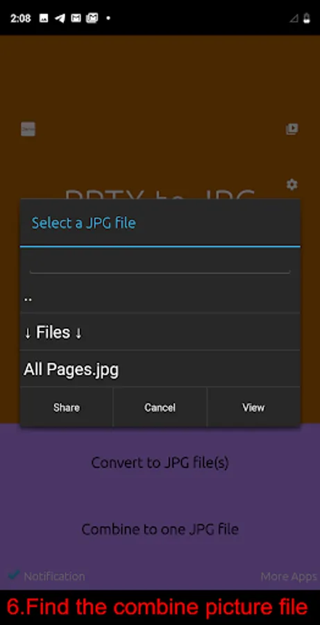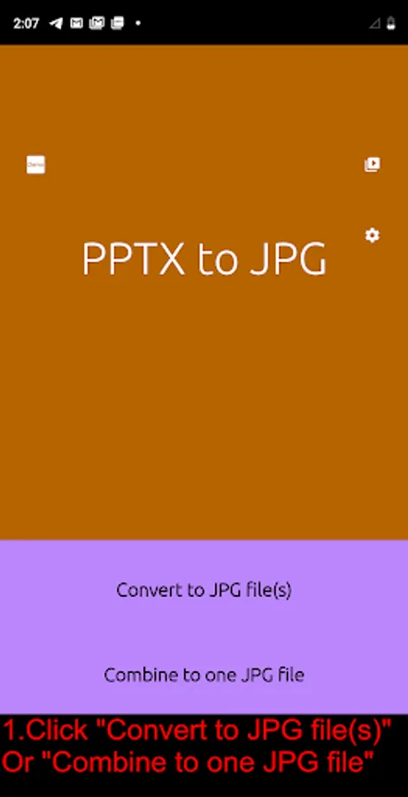 * Or Tap "Combine to one JPG file" and select a PPTX file.