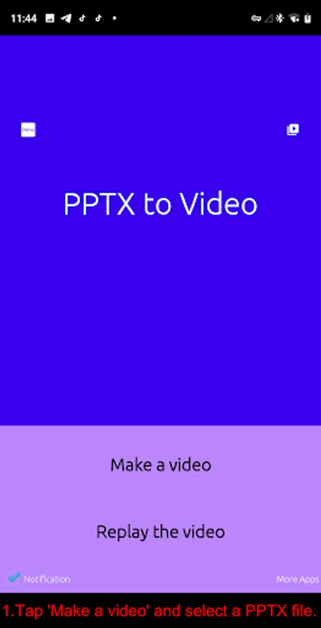 * Tap 'Make a video' and select a PPTX file.