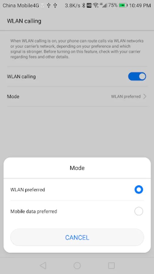 2.Click "WLAN calling"