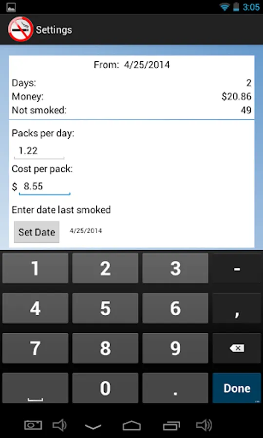 There will be no preaching here. The app isn't even going to link up to other resources to help. This stands by itself as incentive to help you quit.