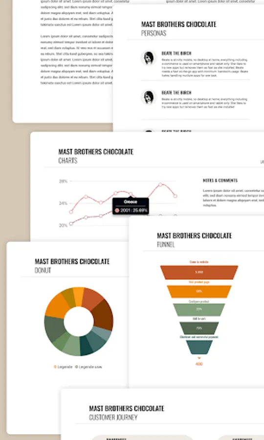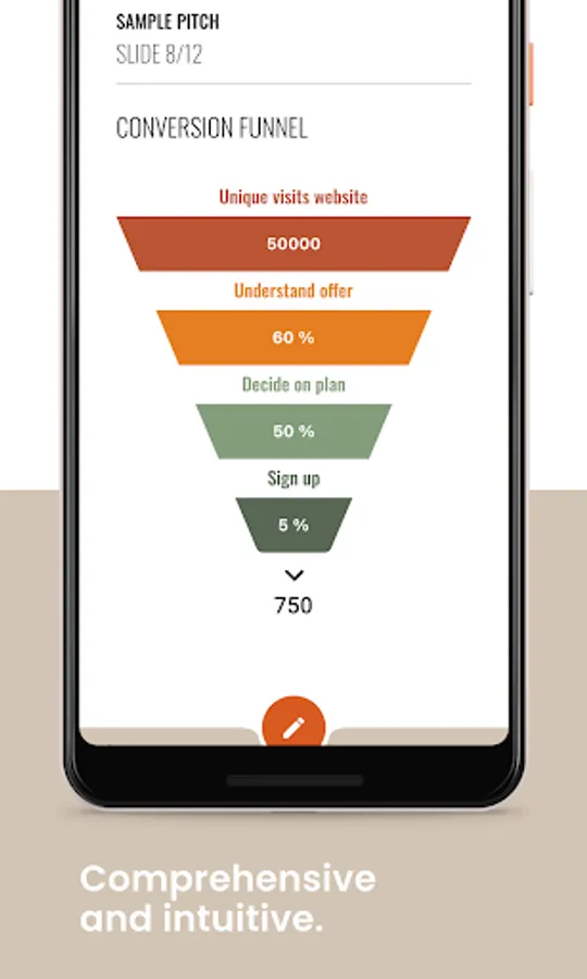 Our app is comprehensive & intuitive. It guides you through the process of creating your convincing presentation - and in the end, generates a perfect PDF, ready to be presented.