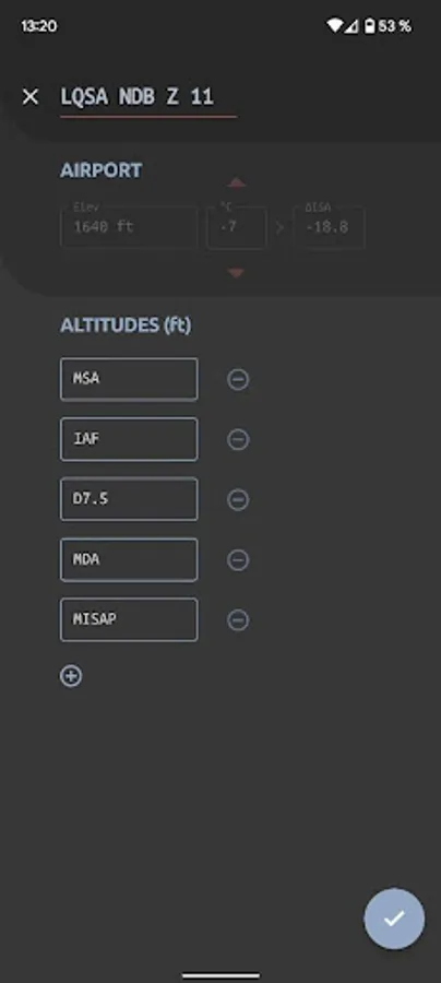 SubStandard is an easy to use app to apply cold temperature corrections in aviation. Moreover it lets you store sets of altitudes for quick access later on.