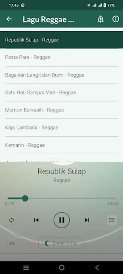 The Mulana Ardiansyah Reggae song is an mp3 application that contains a collection of cover songs by Maulana Ardiansyah, the reggae version, which are hits. We present reggae songs offline that you can enjoy anytime and anywhere, without quotas and without buffering.