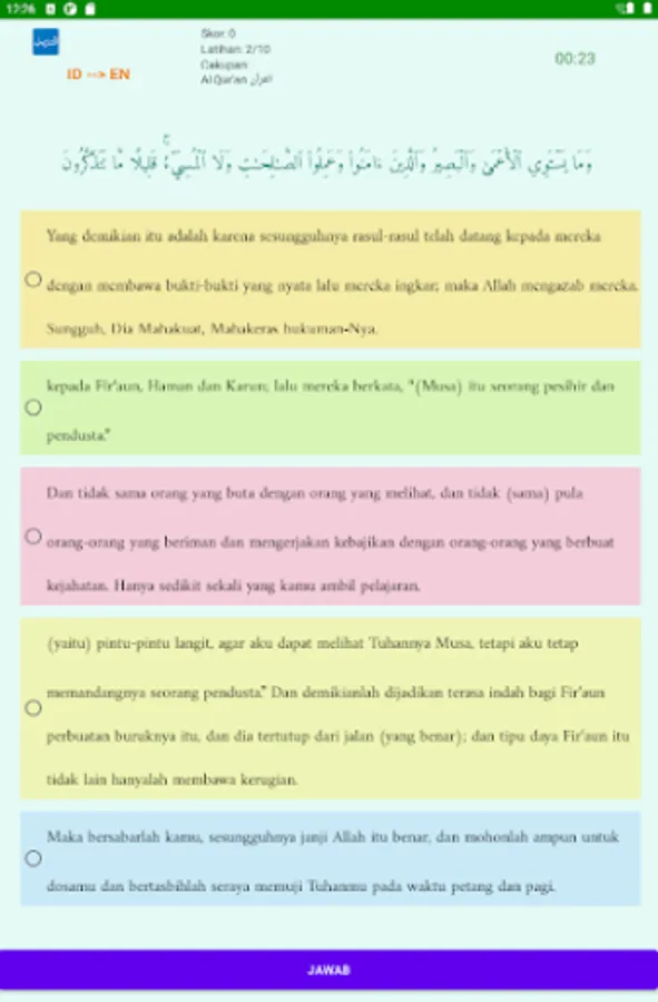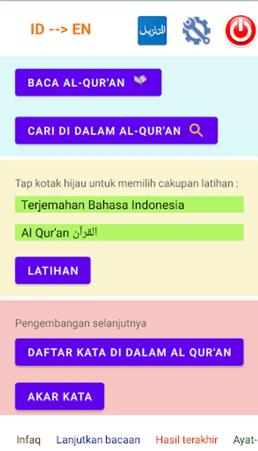 At Tanzil is an application to read Al Qur'an, to search a word in the Al Qur'an, and to practice Al Qur'an in quiz format.