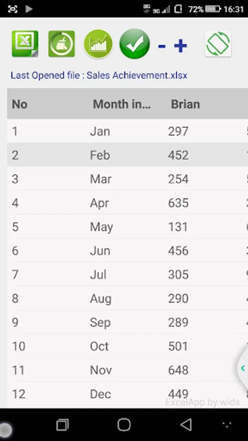 ExcelApp automatically save opened file which can be maintained for frequent use, the app is allow user to add new row, edit cell value or delete the existing row.