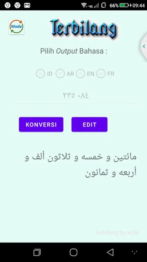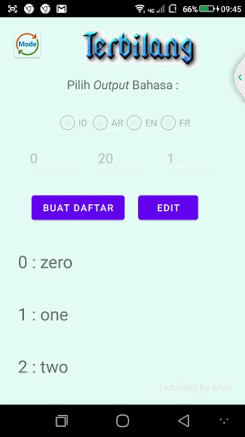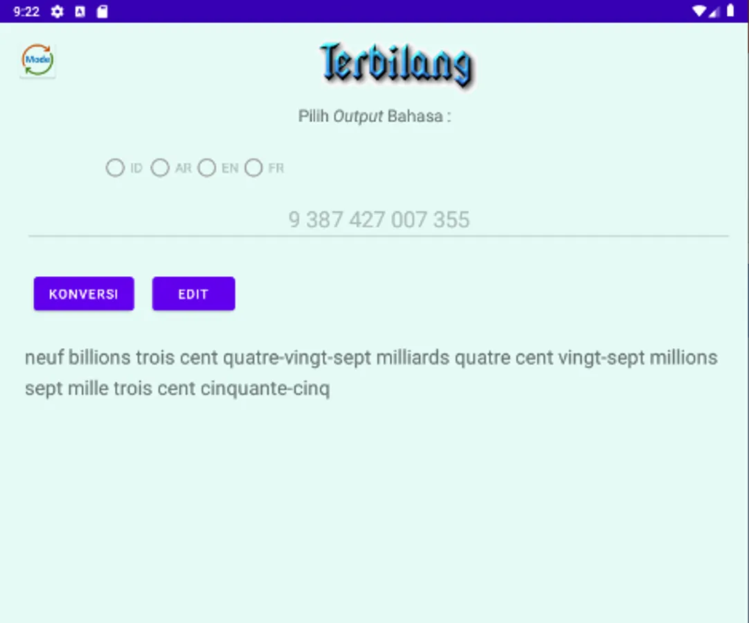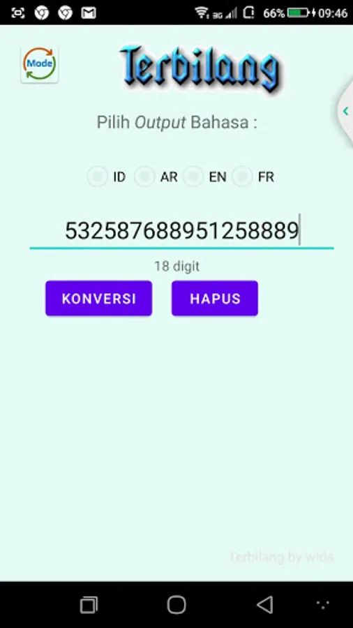 1. The numeric mode for one number (maximum 18 digits) to be a word.