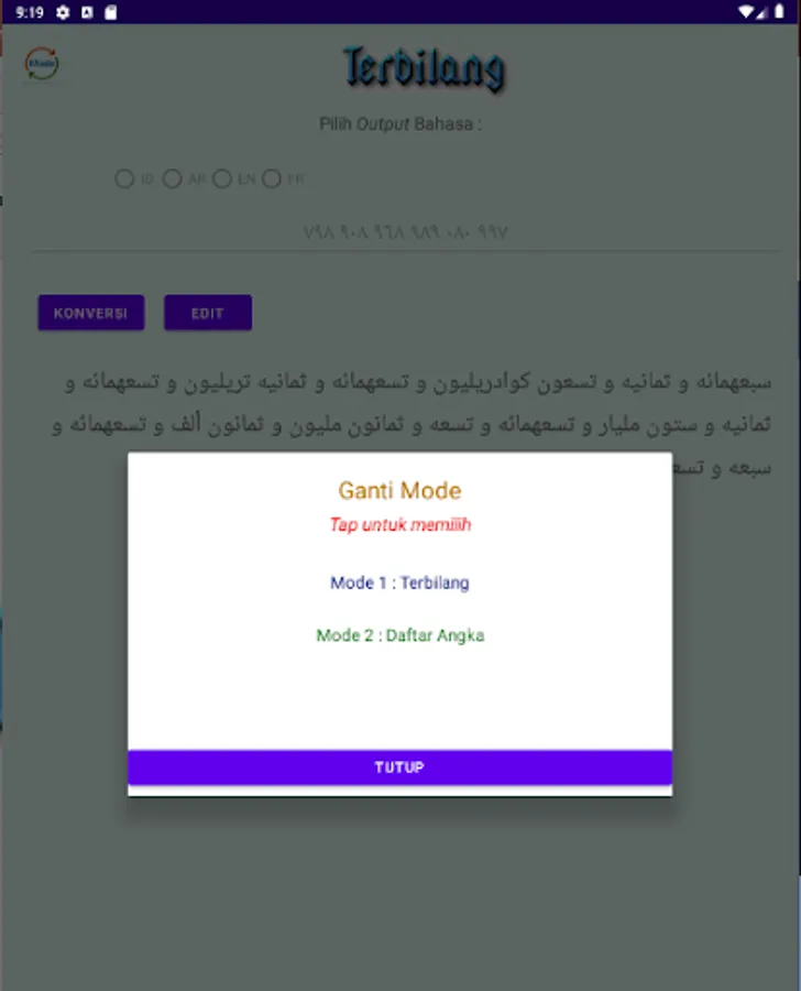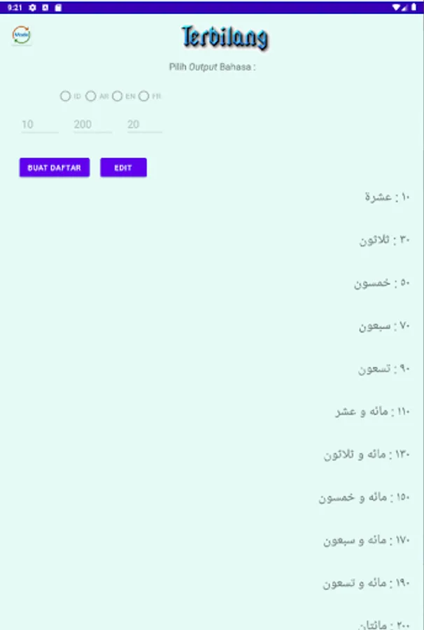 Applications Spelled out there are 4 language options, namely Indonesian, Arabic, English, and French.
