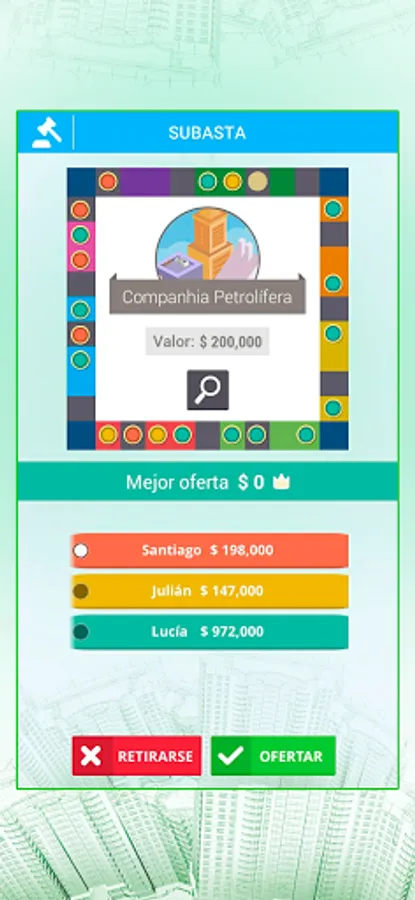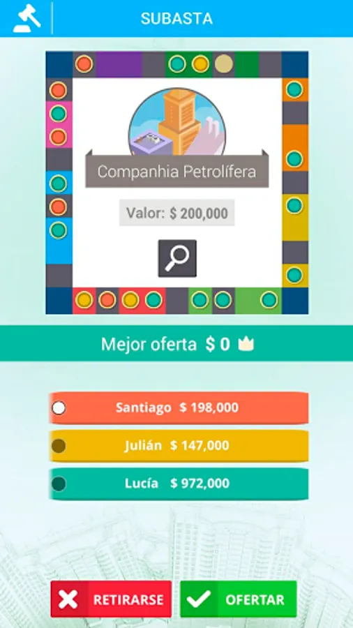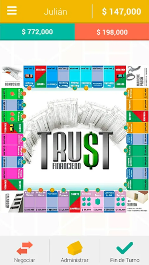 The basic idea of the game is to buy properties, get the most money and try to bankrupt the other players. When the player has to reach a locker where there is a free property, he can buy it from the Bank and if he does not want it, it is auctioned, becoming the property of the one who pays the best. The steps to follow are written on the Luck and Surprise cards.