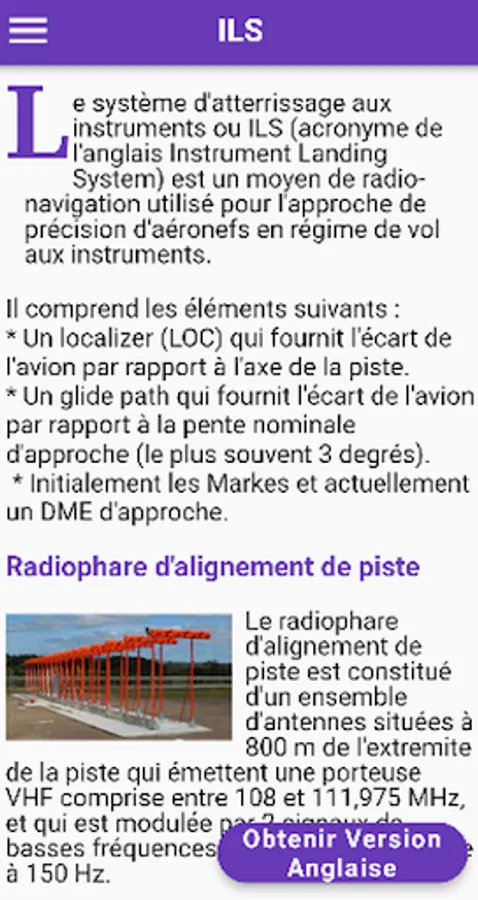 • a brief description of the operation of the ILS instrument landing system, which is an air navigation aid tool.