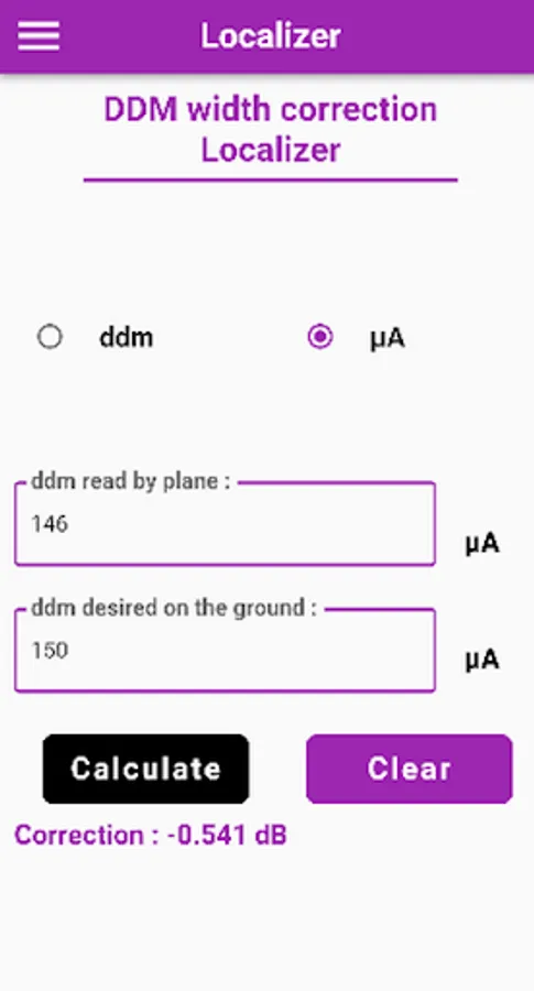 • Calculation width ddm correction of the localizer during the in-flight check.