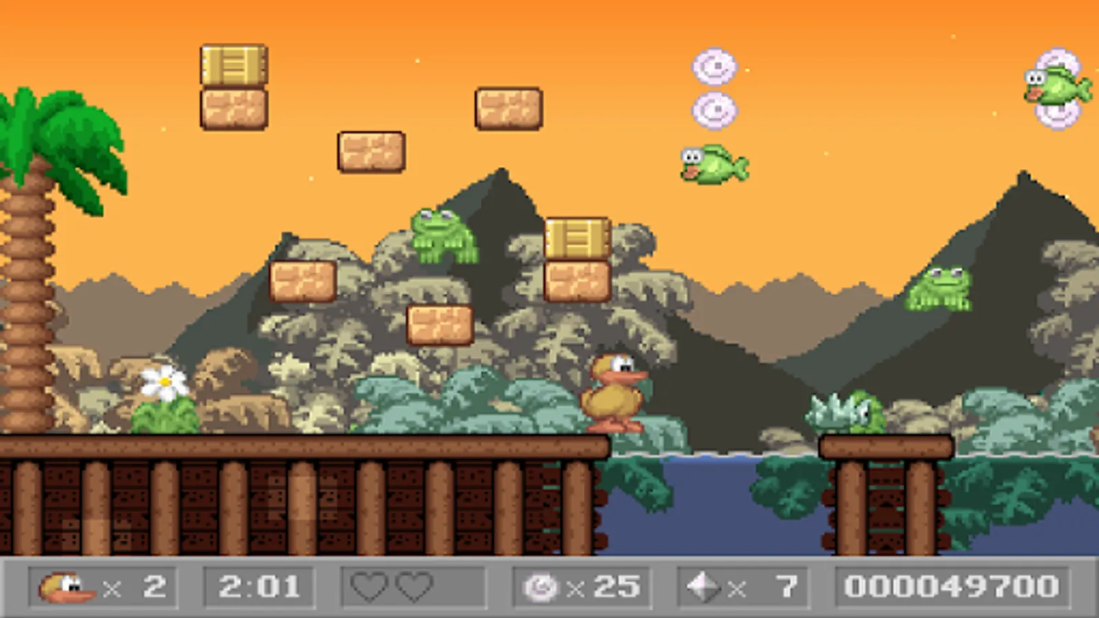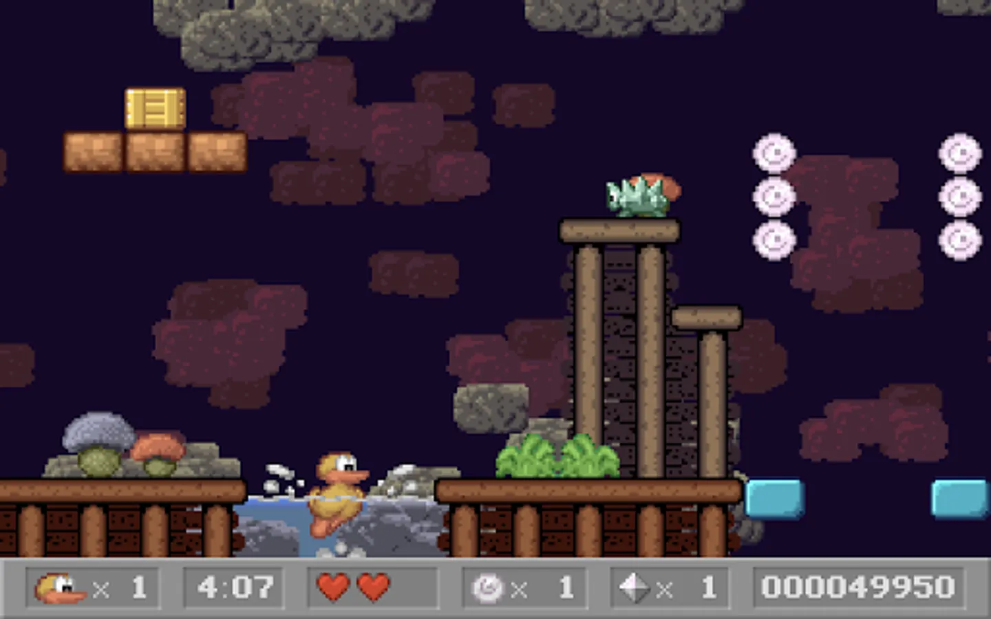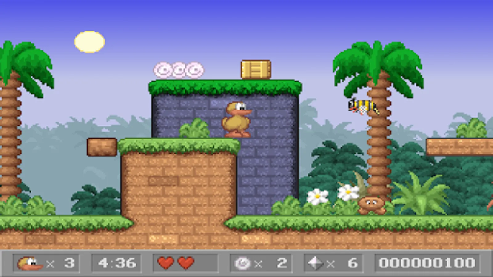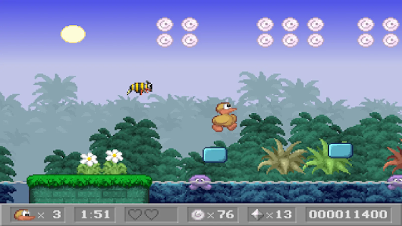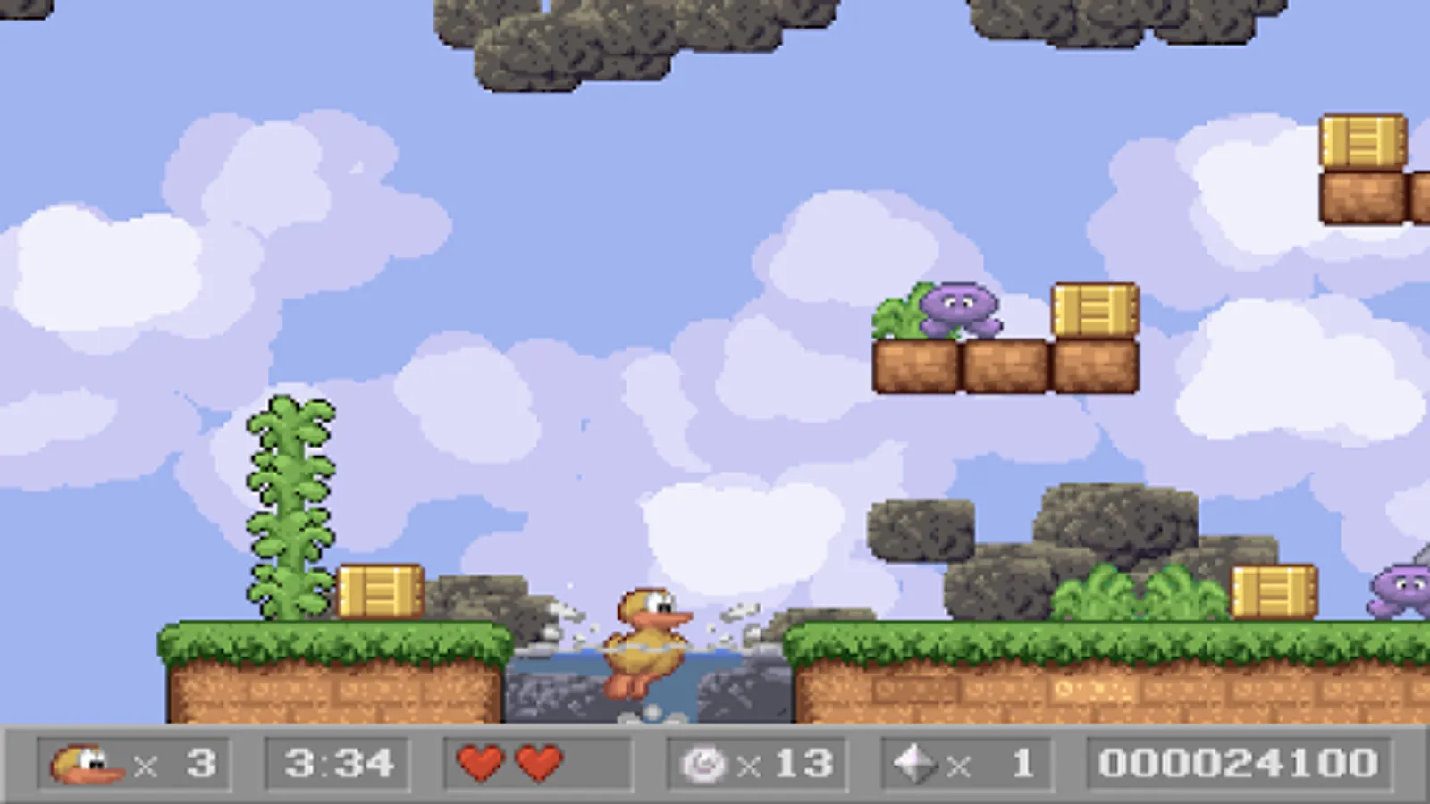Charlie the Duck is a classic side-scrolling platform game. Run through levels, collect coins, diamonds and other power ups. Jump on top of enemies to defeat them. Dive into the water to find hidden areas!