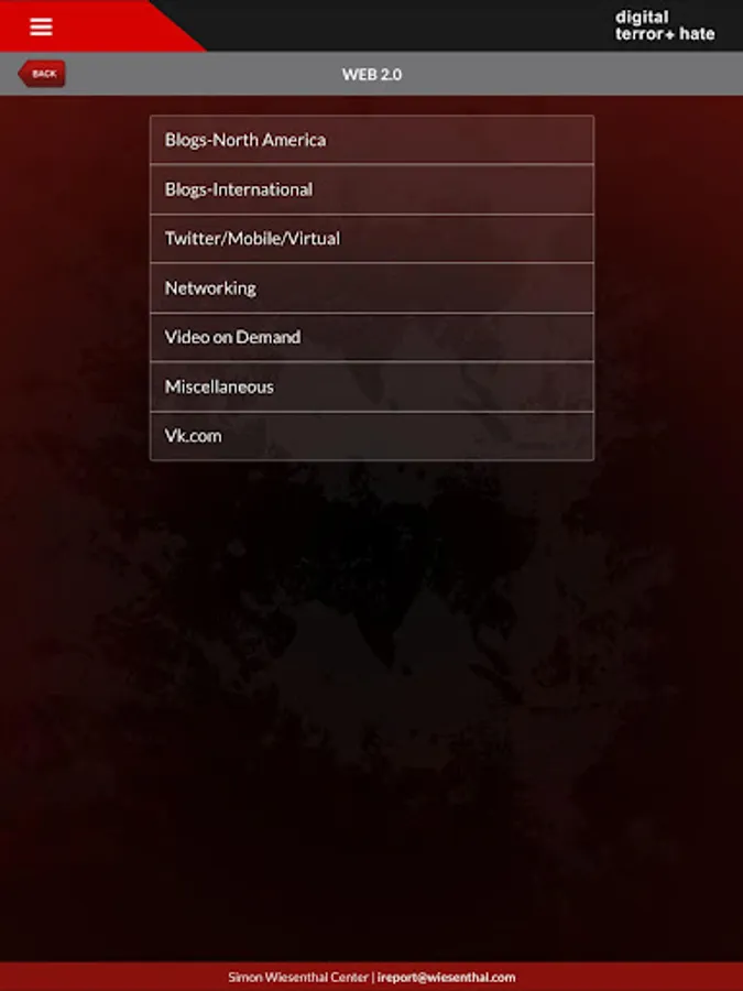Digital Terrorism and Hate is based on the Simon Wiesenthal Center’s annual report and draws from over 25,000 problematic blogs, websites, social networking pages, forums, games, apps and newer online technology illustrating the latest trends in how hate and terrorist groups manipulate and leverage digital technologies.