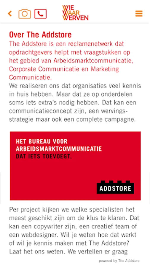 The Addstore is an agency that specializes in labor market. We realize that organizations have a lot of knowledge. But they need something extra parts sometimes. That can be a communication concept, a recruitment strategy, but also a complete campaign.