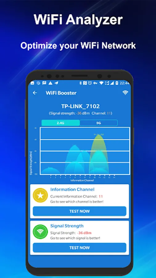 Shows the WiFi channels around you. Helps you to find a less crowded channel for your wireless router and Tell you WiFi signal strength and see witch WiFi signal is better.