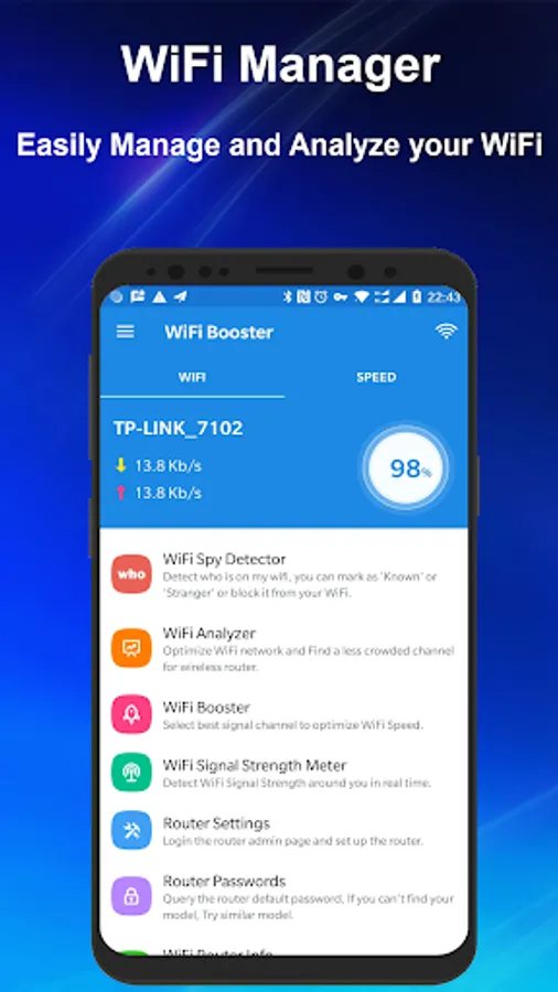 WiFi Manager - WiFi Network Analyzer & WiFi Speed Test is a handy WiFi Analyzer tool.