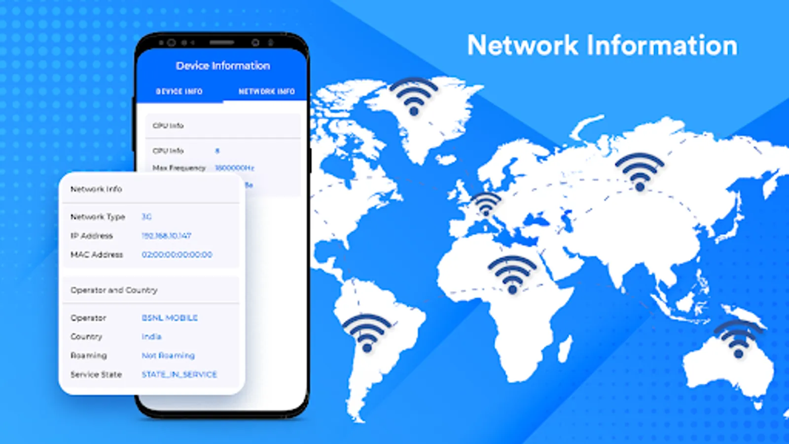 Device Information: You can get your device information like Name, MOdel name, Product code, screen details, CPU Info, Network Info, and Operator and country.