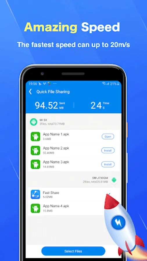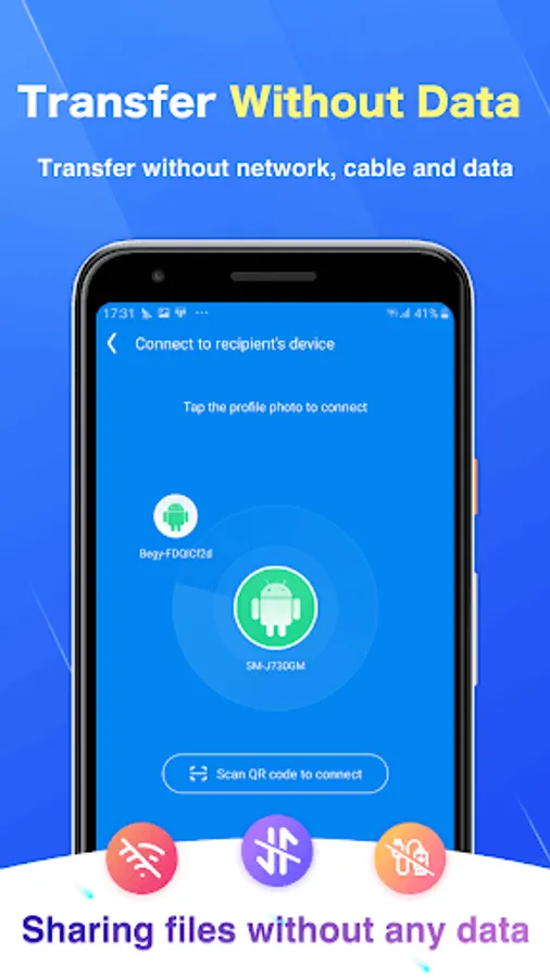 Fast Share allows you to transfer files from Android phones, without using Wi-Fi or mobile data. Not only is Fast Share easy to use and there is no cost to the user, File transfering has never been easier!