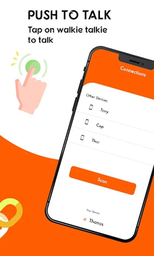 Wifi walkie talkie communication can be used by simply connecting your devices to the same Wi-Fi, Bluetooth and Wi-Fi Hotspot. Two way radio- wifi intercom does not require you to follow lengthy procedures for sign-up but instead, only enter your name in walkie talkie radio and you are ready to go for your free call. Just be sure to install wifi intercom on all your devices! talk chat- Push to talk radio allows two or more users to have instant conversations, just as if they were using a PTT walkie talkie app.