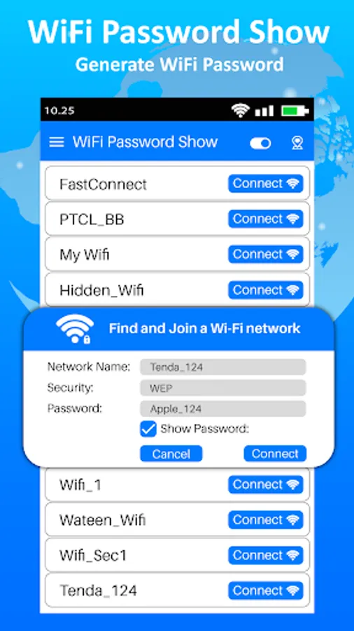 Wifi password show - Wifi key master is simple wifi password manager app that is able to show wif password of previous connected WiFi networks. WiFi Password Show app helps you to recover all the wifi passwords. WiFi Password Recovery is perfect WiFi Password Master kay app for you if you often forget passwords, you can use this app to remember all the connected WiFi passwords.