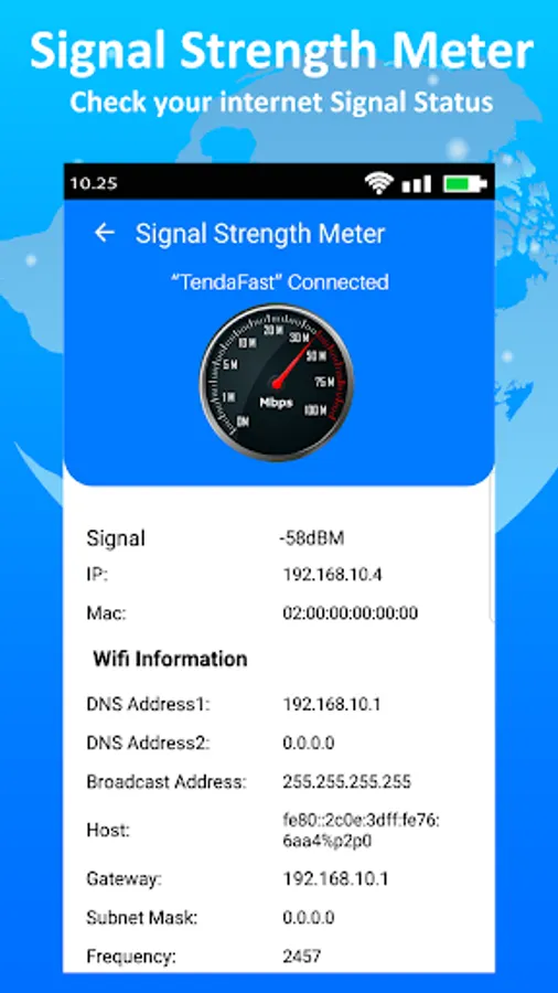 WiFi Signal Strength feature allows you to view your current WiFi signal strength. This app will update the signal strength constantly so you can walk around your house, work, or anywhere to find the best WiFi signal.