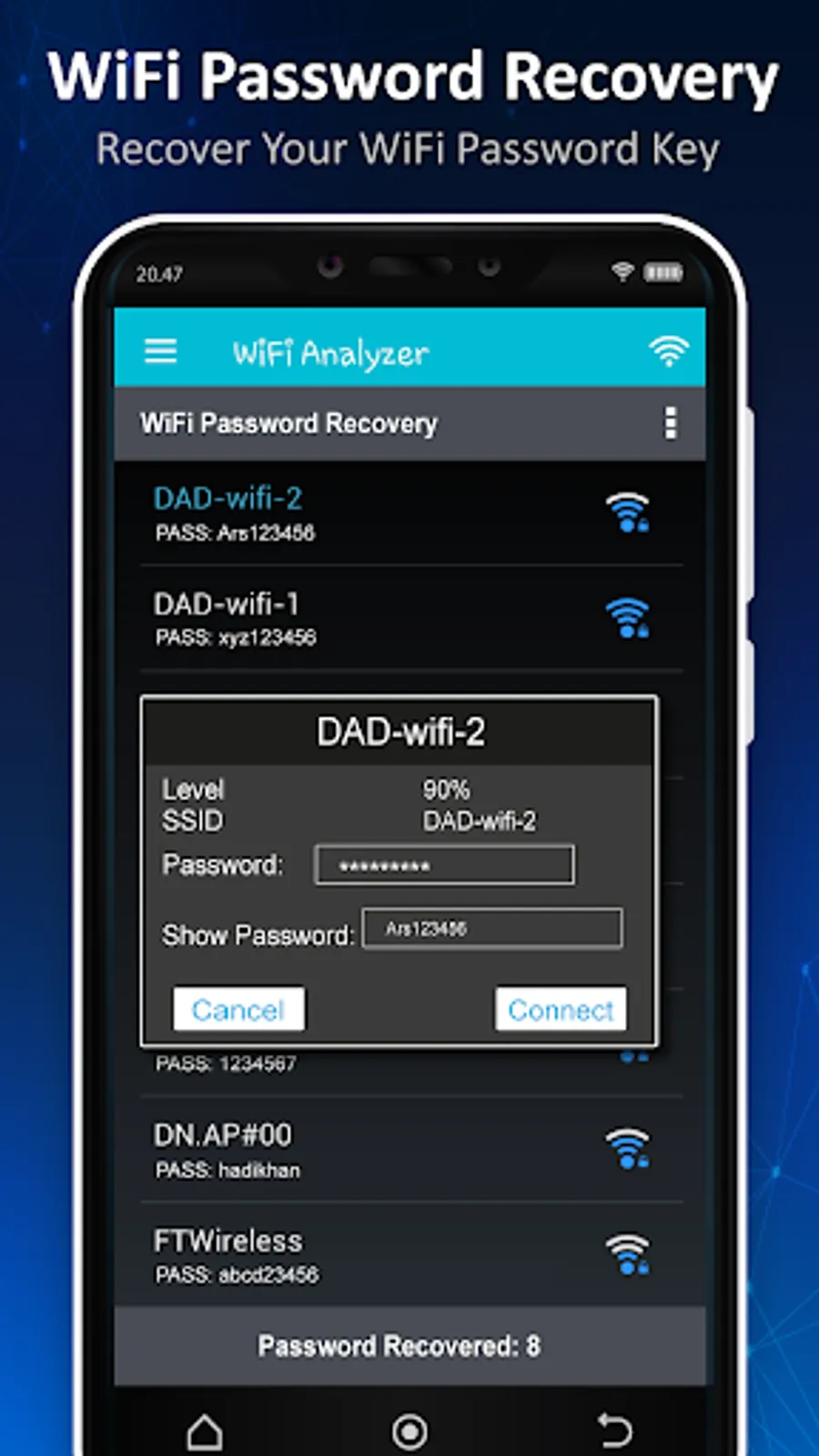 Wifi Show Master key - Show Wifi password app is a useful tool to recover all the WiFi passwords and displays all the passwords for the WiFi networks you've ever connected to.