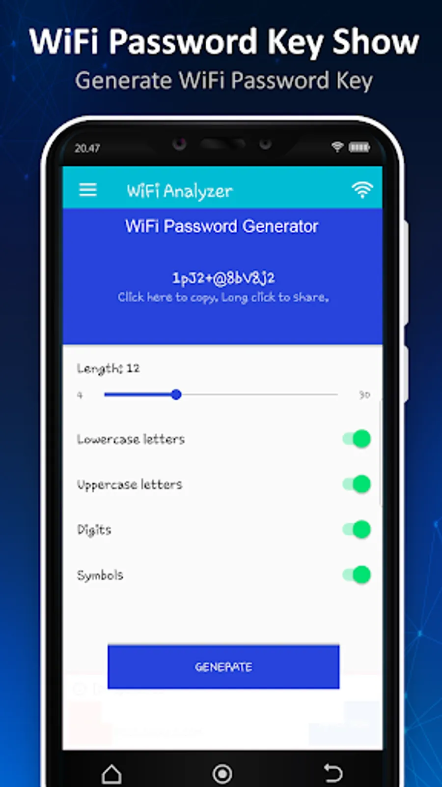 Wifi Show Master key app has the features like wifi Speed Test Meter, wifi Password master key Show, wifi Password key recovery, wifi Signal strength meter ,wifi Netwok Analyzer, wifi Password generator.