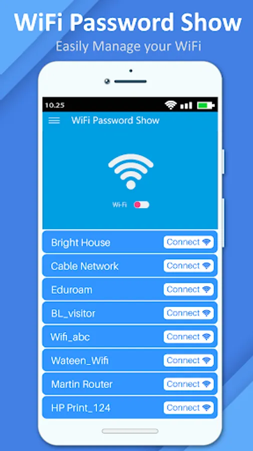 Wifi Password Show - Wifi Password Master Key helps you to find, connect, manage wireless network. You can connect free wifi connection, view the wifi signal strength, turn wifi on off, all in this free wifi app.