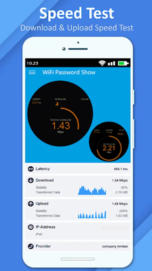 • Measure accurate wifi PING ,UPLOAD and DOWNLOAD data speed.