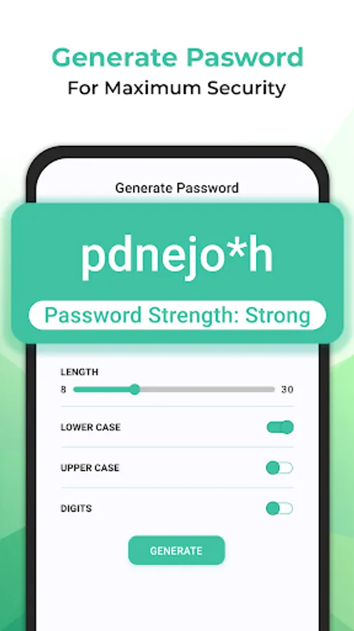 9. The generate password feature of the give me Wi-Fi passwords app / wi-fi万能钥匙 lets the user generate strong passwords. The user can include lower case letters, upper case letters, digits, and symbols according to their preference. Moreover, the user can later copy and share the generated password without memorizing it.