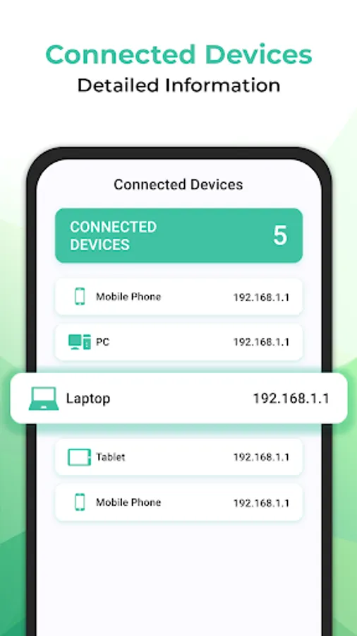 5. The connected device feature of Wi-Fi key connect allows the user to get information regarding devices connected to Wi-Fi channel in real-time. Using this feature, one can easily determine the total number of devices, list of devices, and their respective IP address.