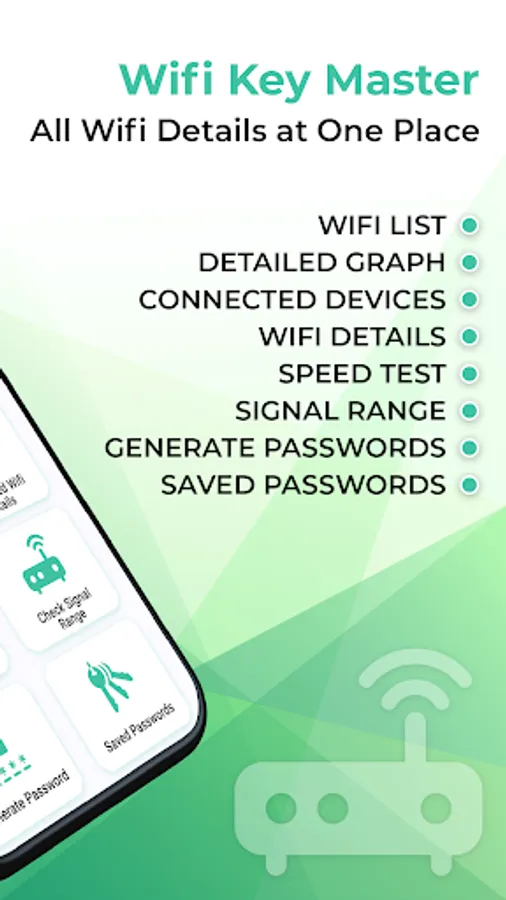 One amazing feature of master key Wi-Fi password 2022 is generate password. Using this feature, one can easily generate strong and unbreakable passwords by using a combination of uppercase letters, lowercase letters, numbers, and special characters. Other implausible features of the Wi-Fi master key are signal range, graph, Wi-Fi list, connected device, etc. Download the Wi-Fi password show master key app now if you want such amazing features on your phone.
