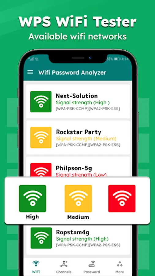 WPS WIFI Analyzer _WiFi Tester is a utility app which help you to detect the potential risk of wi-fi anti-theft and risk of aggressive wifi password risk and WPS connection required risk. You can easily turn your mobile into wifi wps wpa tester and hotspot wifi analyzer. This WPS connector app shows all available wifi channels around you. wifi passwords recovery feature find wifi key without root and generate very powerful and secure passwords for your wifi passwort teilen and you can easily access available wifi wps network by using wps wpa wifi master key.