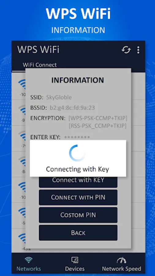 WiFi WPS Connect - wifi connect & speed test app is a simple ,useful and powerful tool to check and detect wifi password and WPS risk. This app can connect wifi connections and test all accurate speed of data Download ,Upload , PING and measure wifi Signal stregth.