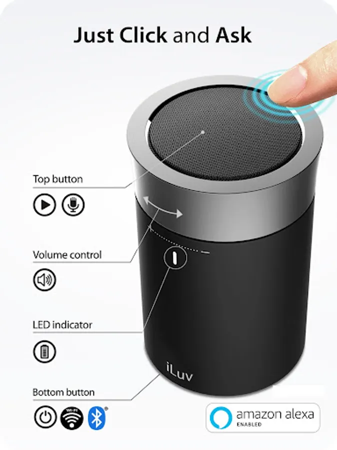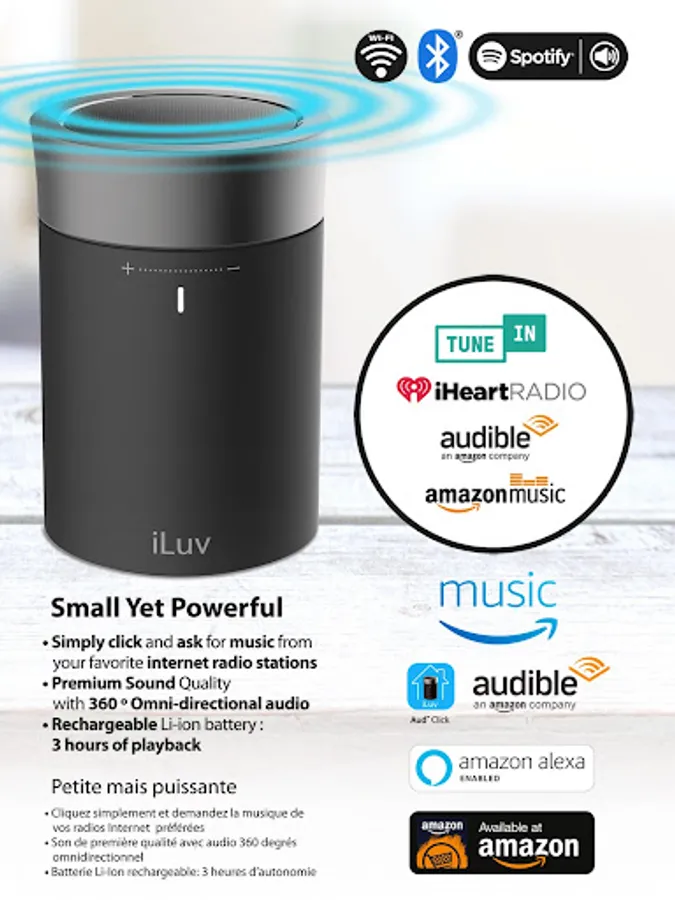 The free Aud Click App is a companion to your iLuv Aud Click, a Portable WiFi & Bluetooth Speaker with Amazon Alexa. This app will help you setup your device as well as enhanced its features. Interactions with the Aud Click will automatically be mirrored on your Amazon Alexa App, providing more information for your reference.